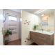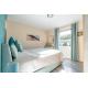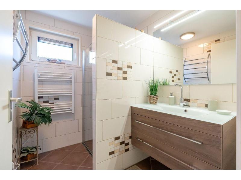 De bungalow heeft twee slaapkamers: één met een tweepersoonsbed en één met twee eenpersoons boxspringbedden. Beide kamers zijn voorzien van elektrische kachels. De moderne badkamer beschikt over een heerlijke regendouche en een wastafel; het toilet is apart. In de bijkeuken staat een wasmachine tot je beschikking.