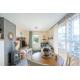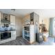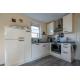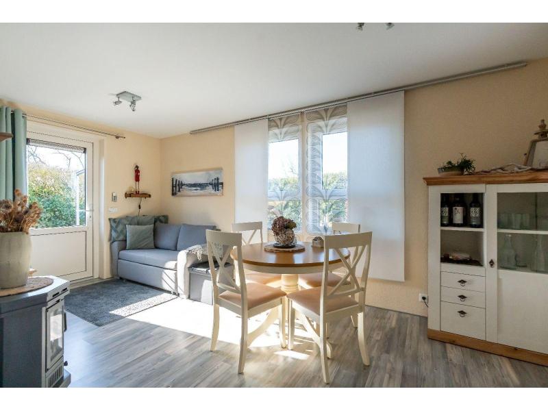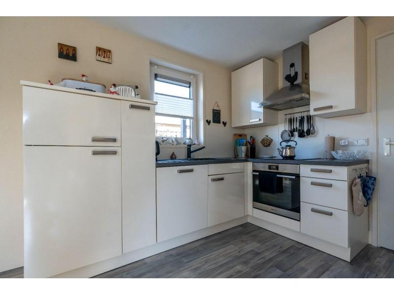 De open keuken is uitgerust met een keramische kookplaat, een oven, een koelkast, een vriezer en een vaatwasser. Aan de eettafel is plek voor vier personen.