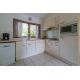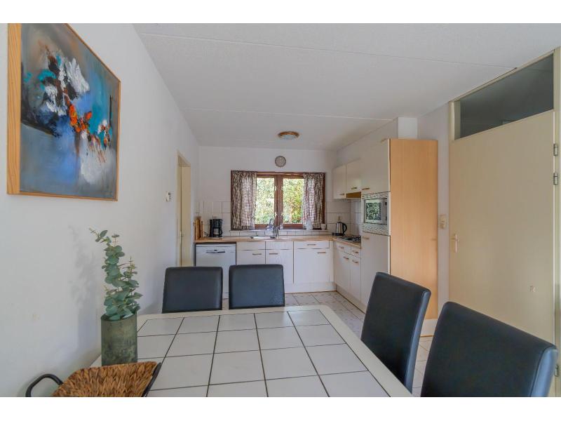 De open keuken is van alle gemakken voorzien. Het aangrenzende eetgedeelte biedt plaats aan zes personen.