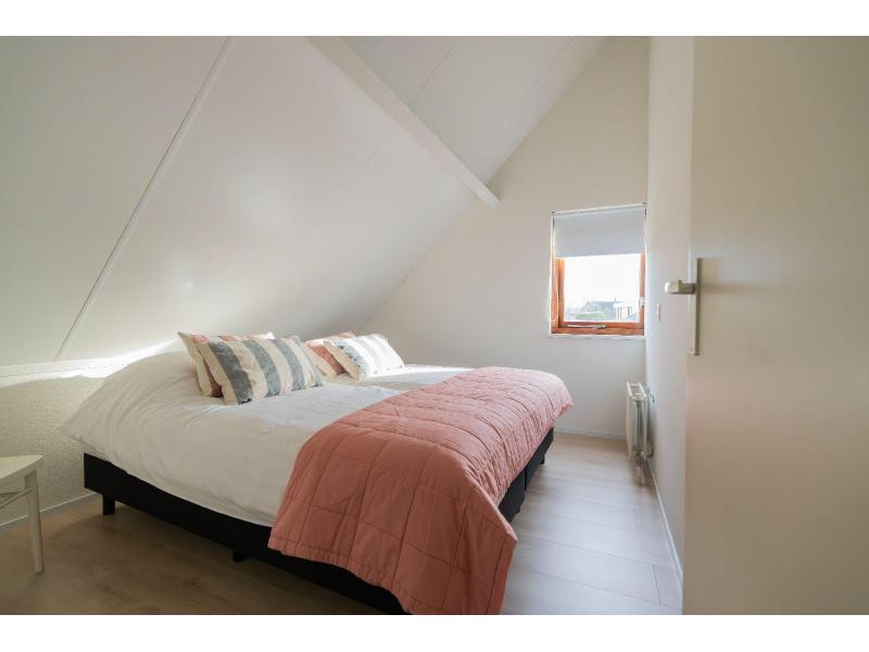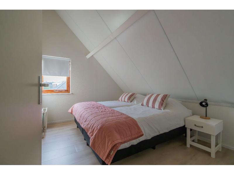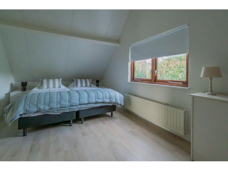 Op de verdieping bevinden zich drie comfortabele slaapkamers met luxe eenpersoons boxspringbedden en voldoende kastruimte. De woning beschikt over twee badkamers: één op de begane grond met douche, toilet en dubbele wastafel en één op de verdieping met douche, wastafel en toilet.