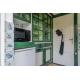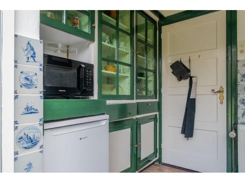 De keuken is van alle gemakken voorzien en beschikt over onder andere een 4-pits gaskookplaat, een koelkast met vriezer, een vaatwasser en een combi-magnetronoven. Op de begane grond bevindt zich tevens de badkamer met douche en toilet. Daarnaast is er een aparte werkkamer met een verstelbaar bureau en een comfortabele bureaustoel.