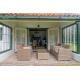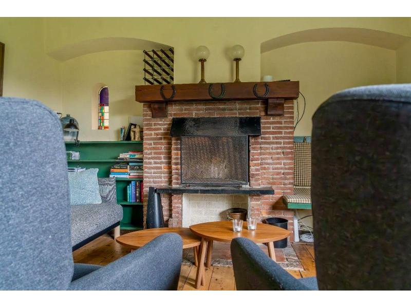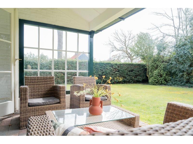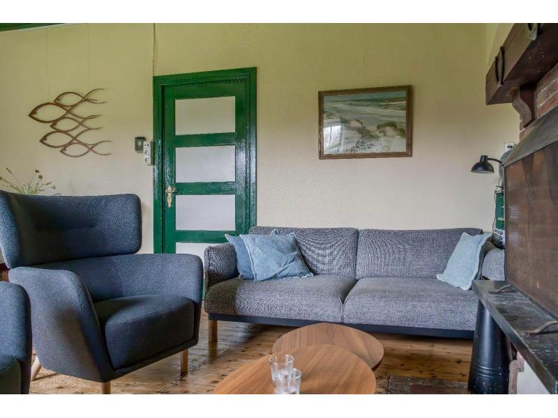 De knusse woonkamer vormt het hart van de woning, met een comfortabele zithoek, een televisie en een open haard. Een fijne plek na een dagje strand. Aansluitend vind je de eettafel, die direct grenst aan de overdekte veranda met loungehoek. Perfect voor lange zomeravonden.