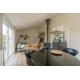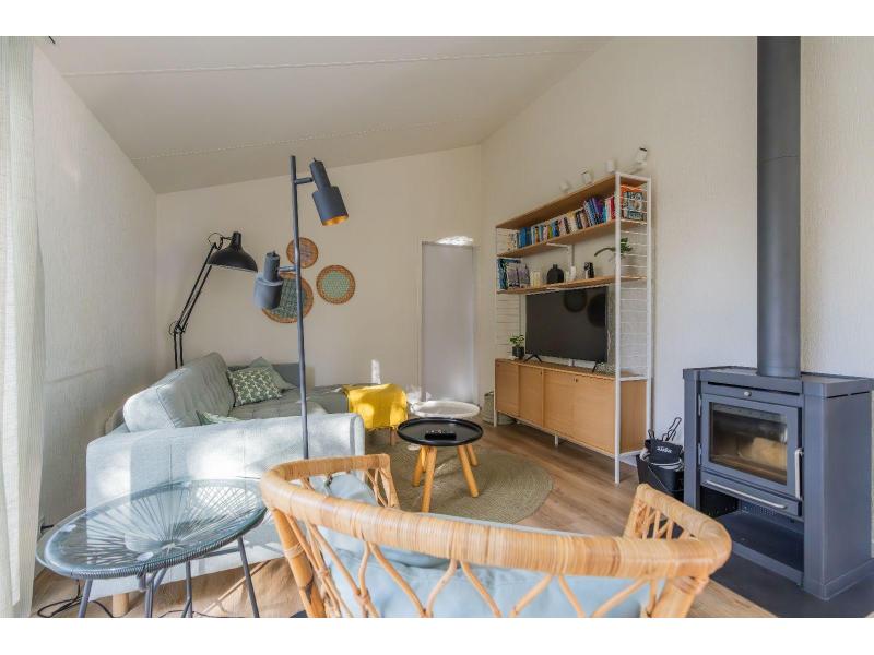 Via de hal, voorzien van een separaat toilet, heeft u toegang tot de bijzonder smaakvol ingerichte, lichte woonkamer. Er is een comfortabele zithoek met een knusse houtkachel. U beschikt over gratis WIFI en digitale televisie met een keur aan binnen- en buitenlandse zenders. Vanuit de woonkamer heeft u toegang tot de tuin met het ruime terras dat uitgerust is met een tuinset voor 4 personen. Hier kunt u de dag beginnen met een ontbijtje in de zon en in stijl afsluiten met een goed glas wijn en een barbecue (de huidige foto's zijn in de winter gemaakt).