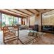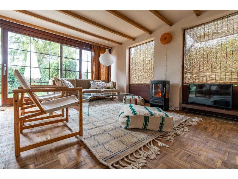 Bij binnenkomst valt de gezellige woonkamer met balkenplafond meteen op – compleet met SMART TV, snelle wifi en een heerlijke zithoek. De elektrische haard maakt de ruimte extra knus en huiselijk. Vloerverwarming zorgt ervoor dat het binnen altijd aangenaam is, ongeacht het seizoen.