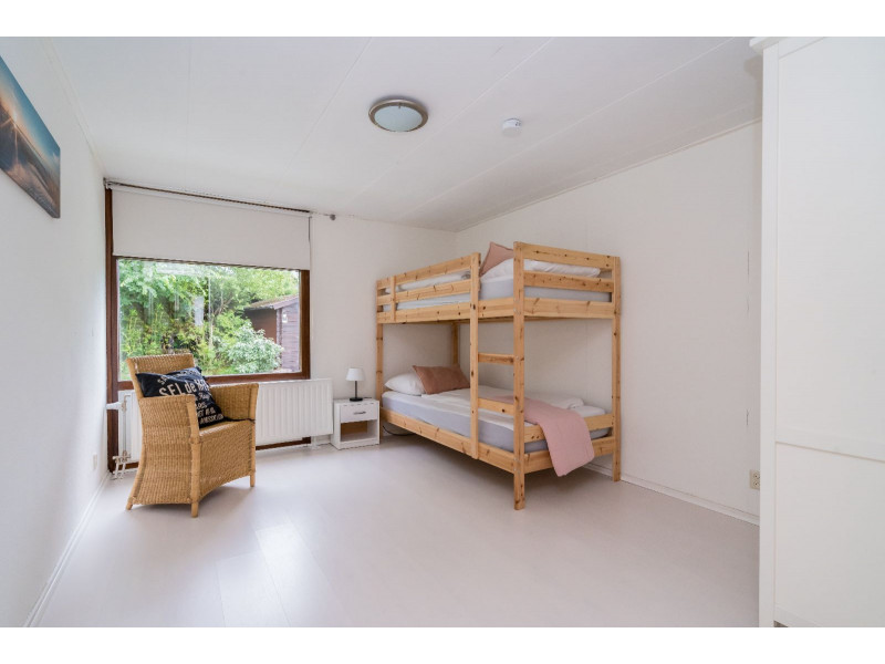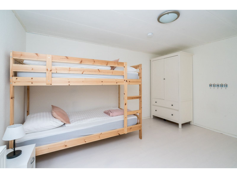 De ouderslaapkamer is voorzien van een tweepersoonsbed, de tweede slaapkamer heeft een stapelbed. Er is voldoende kastruimte.